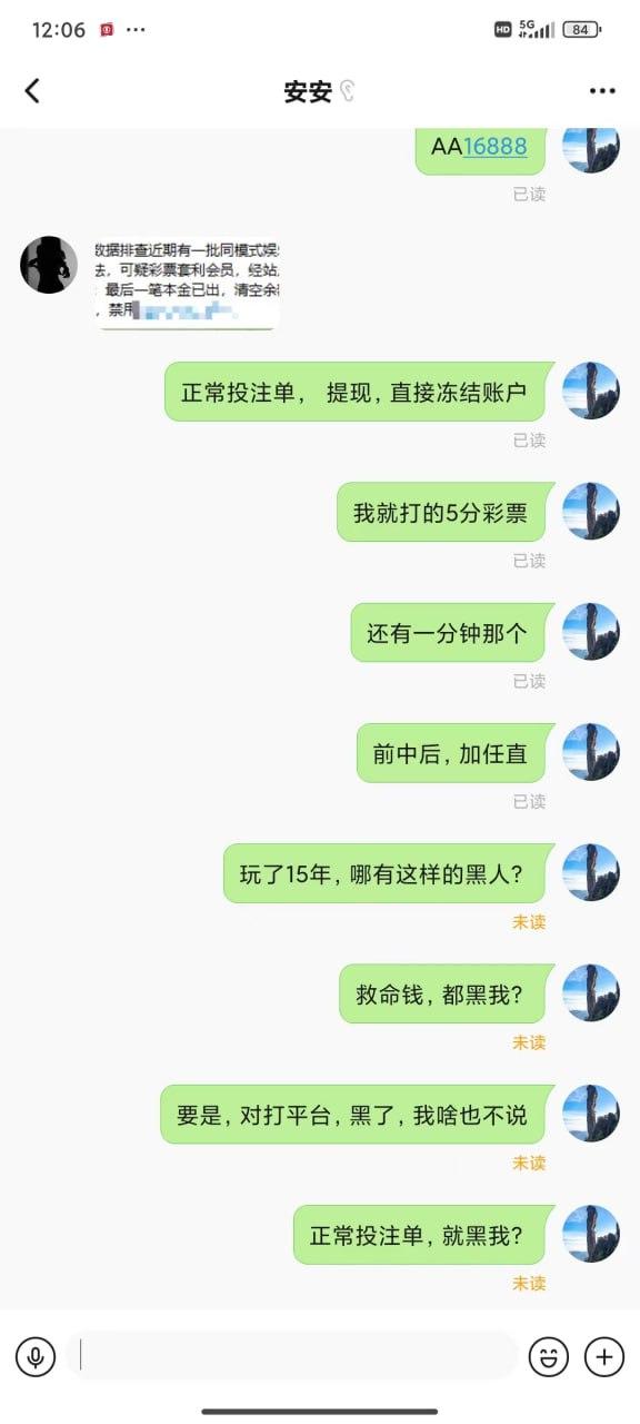 充值后提款未到账,疑似违规被强制下线,账户异常。玩家表示多年玩彩未遇此类问题,呼吁曝光平台,警示其他玩家。