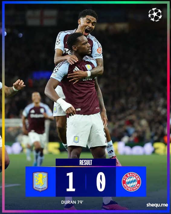 阿斯顿维拉1-0拜仁慕尼黑