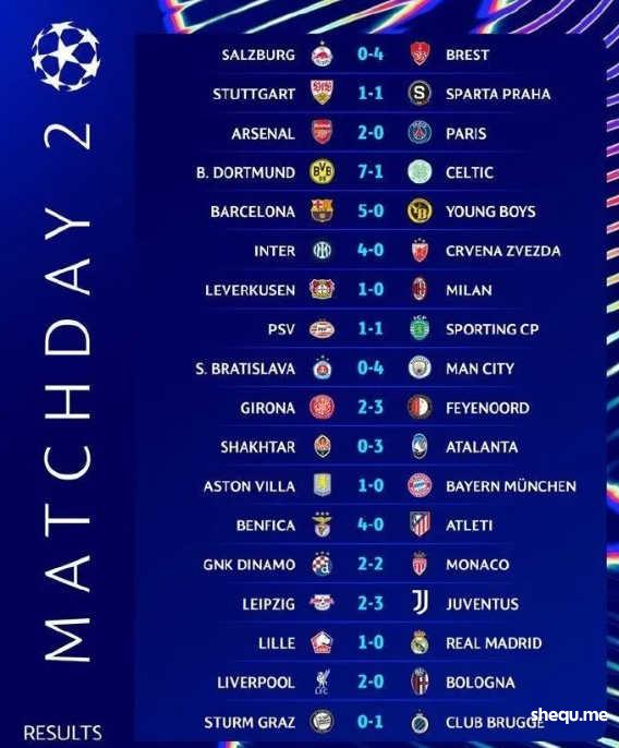 卫冕冠军皇马0-1负于里尔,拜仁0-1被维拉绝杀,两大夺冠热门双双遭遇赛季首败;西蒙尼的马竞更惨,0-4被本菲卡狂虐。利物浦和尤文双双取胜,保住豪门脸面。